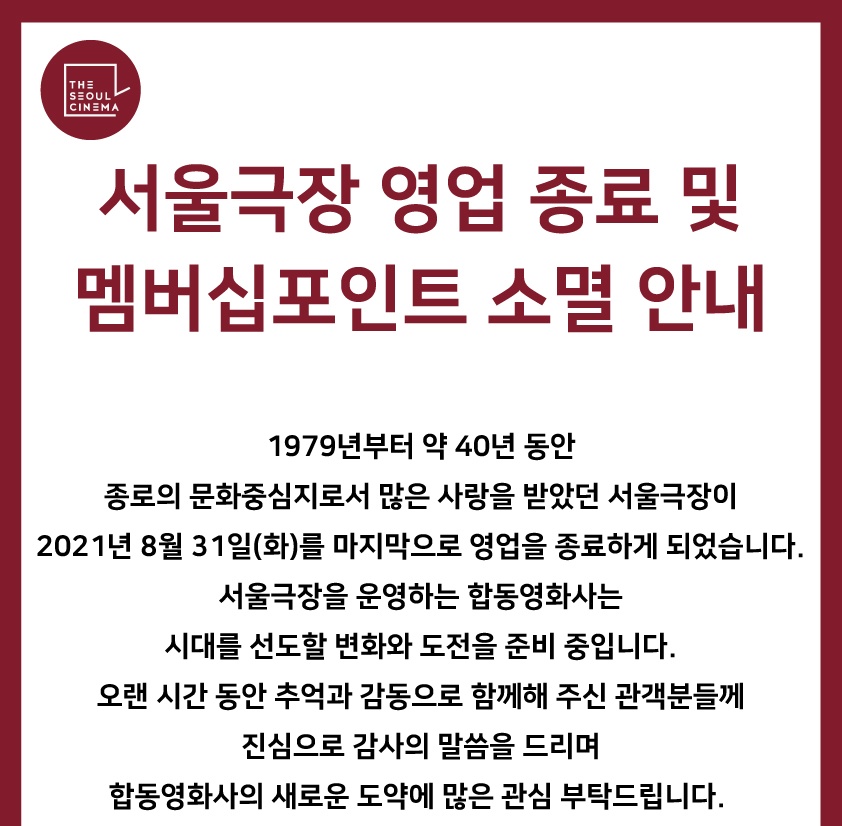 영업 종료를 고지하면서 마지막 몇주간 고별전을 상영했고, 아쉬운 마음에 한 편을 골라 서울극장의 마지막을 함께하였다.