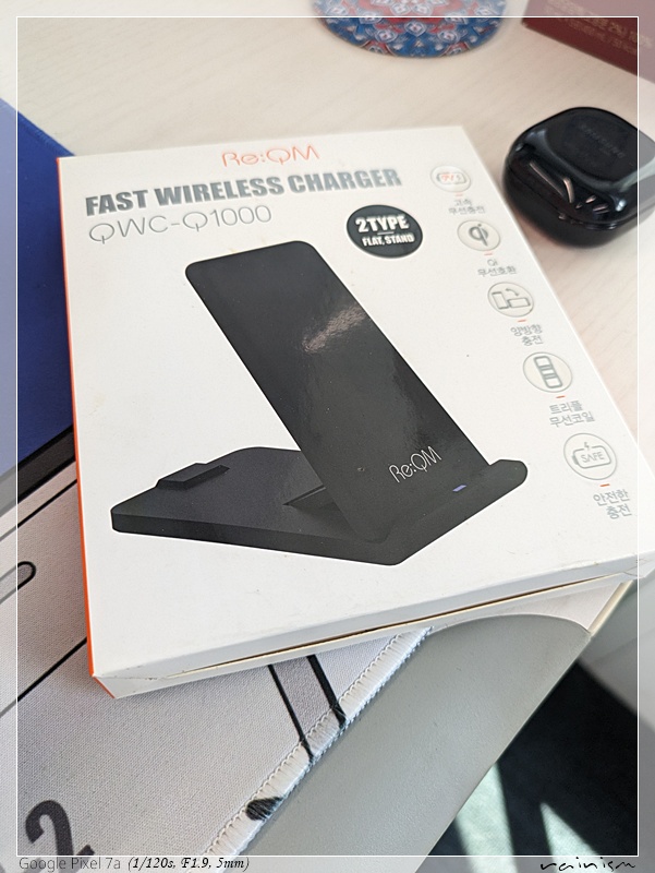 웨이브 다니는 시절 선물로 받았지만, 무선 충전이 지원되지 않는 핸드폰만 사용하고 있었기에 책상 서랍에 넣어 놓고 쓰지 않았는데, 핸드폰 거치대 겸으로 무선 충전 사용하기로 하였다.