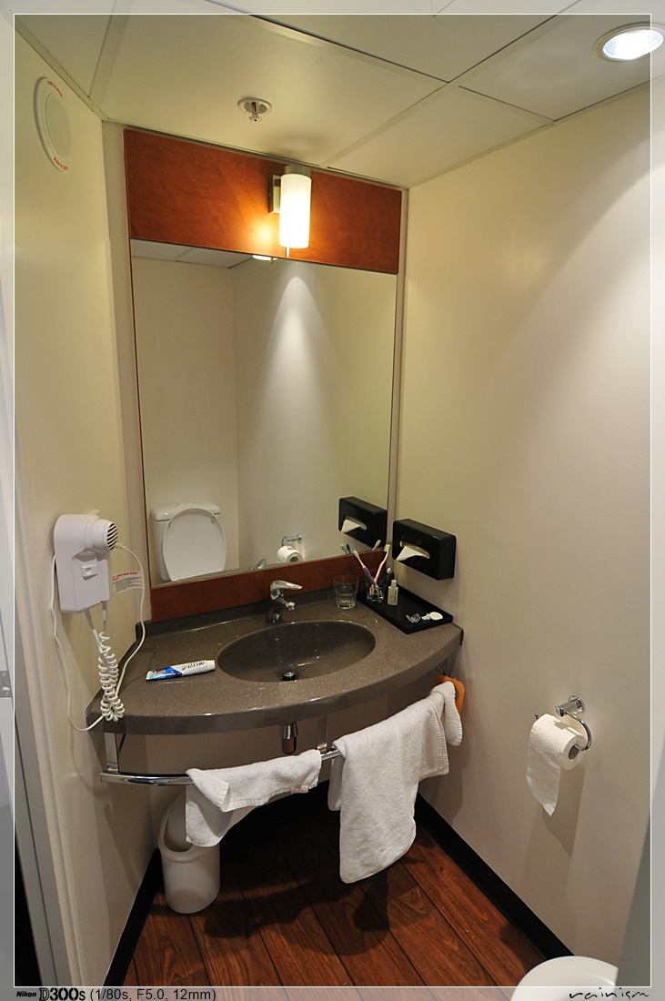 비록 면도를 위한 볼록 거울 같은 불필요하지만 있어보이는 물품들은 포함되어 있지는 않지만, 헤어 드라이어는 포함되어 있군. 그러나 샴푸와 바디 로션이 좀 조악하고, 특히 기본 제공되는 비누는 어딜 가나 조악하다. 수건도 충분히 제공되지 않은 편이다.