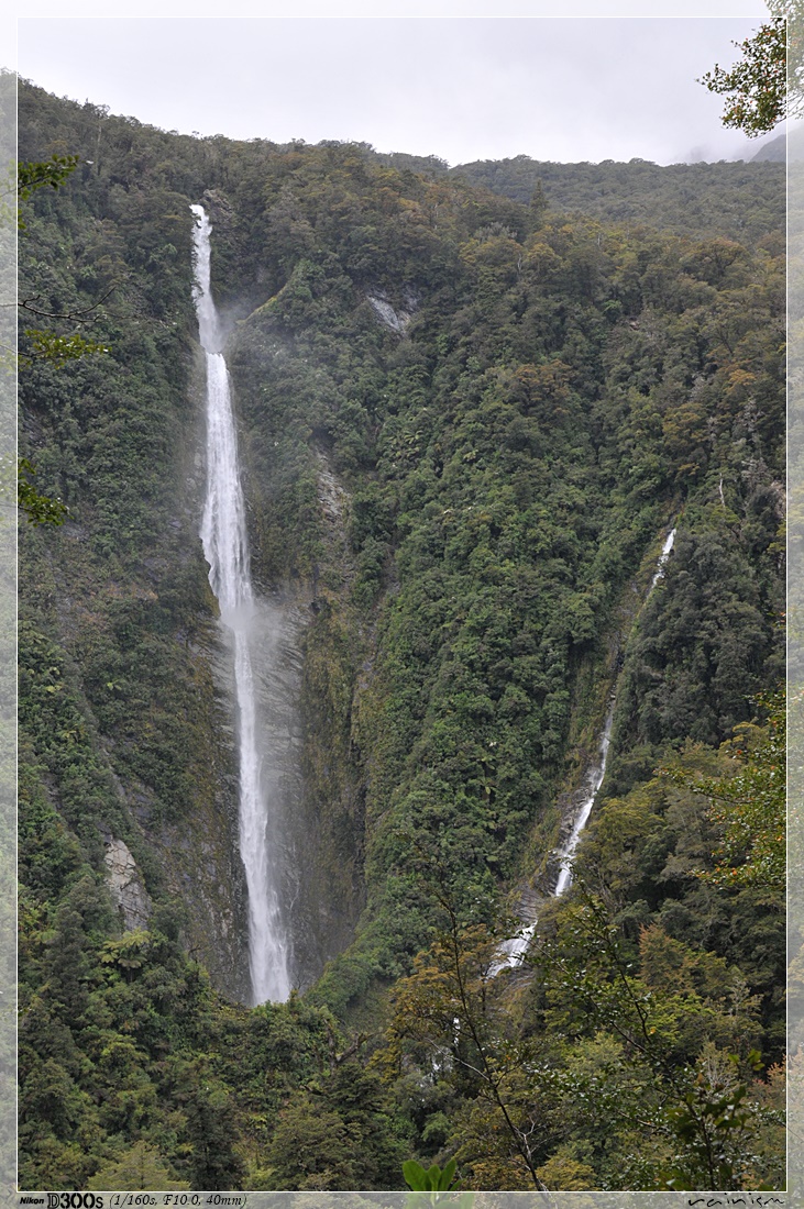 30분 정도 걸어가면 볼 수 있다는 훔볼트 폭포는 예상과는 달리 꽤 먼 거리에서 지켜봐야 하는 폭포다. 아침에 밀포드 사운드 크루즈에서 본 폭포가 몇개인데 라는 생각을 해 보면 이렇게 긴 시간 동안 비포장 길을 달려서 올만한 광경은 아니라는 생각도 들었다.